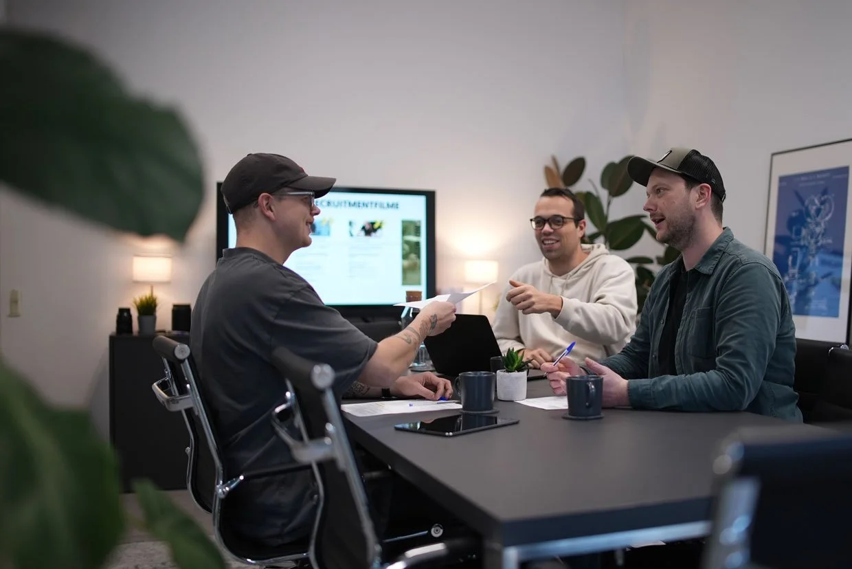 Das richtet sich nach Größe und Art der Produktion. Kleine Social-Clips, Testimonials oder Projektfilme starten meist im unteren vierstelligen Bereich, aufwendigere Kampagnen entsprechend höher. Wir kalkulieren jedes Projekt individuell, transparent und passend zu deinem Bedarf. Versprochen.